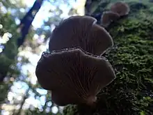 Pleurotus purpureo-olivaceus is a gilled fungus native to Australia and New Zealand.[1][4][5][6] It is found on dead wood of Nothofagus trees.[3][7] Although morphologically similar to some other Pleurotus fungi, it has been shown to be a distinct species incapable of cross-breeding and phylogenetically removed from other species of Pleurotus.[1][8]