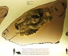Fossils of this Miocene-Pliocene, scansorial herbivore have been found in Afghanistan, France, and Turkey.[4] In Spain, Pliohyrax graecus is among the large mammals species found in the Almenara site, deposited during the Messinian salinity crisis, together with Macaca sp., Bovidae indet., cf. Nyctereutes sp., and Felidae indet.[5]