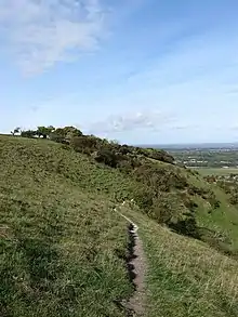 On the scarp, there are three clusters of round barrows on each of the three main spurs that jut forward. They are likely to have been built by Bronze Age farmers. Most of the barrows are not obvious, but there is one that is a yard tall on an arable field just south of the South Downs Way and just west of Novington Plantation (TQ 364 125). Most of them have 'pillage dimples' in their tops where erstwhile treasure hunters or predatory antiquarians dug them out.[9]
