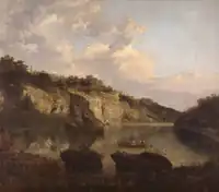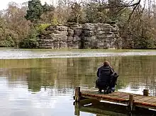 Plumpton Rocks is a man-made lake and surrounding pleasure gardens 3.5 miles (5.6 km) south-east of Harrogate in North Yorkshire, England, near the village of Plompton. The site is now operated as a tourist attraction by the owner, Robert de Plumpton Hunter. It is a Grade II* listed park and garden.[1] The site is now generally spelt with a 'u' (the older name of the parish), although artist J. M. W. Turner referred to it as Plompton Rocks, in keeping with the modern spelling of the parish itself.[2] The gardens reopened in July 2016 following a major restoration of the lake, dam and woods. It closed again in October 2019 to bring the lake dam up to standard for the Reservoirs Act 1975, and reopened in September 2022.[3]