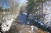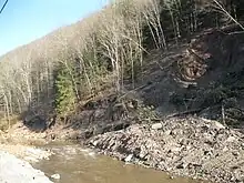 Plunketts Creek cutting through Camp Mountain in the village of Proctor: the creek's ecosystem has recovered since it was a tannery's waste disposal system, from 1868 to 1898.
