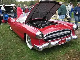 The Plymouth Belmont was a 1954 concept sports car built by Plymouth. It (and the 1954 DeSoto Adventurer concept car) were the first plastic-bodied cars by the Chrysler Corporation. The Belmont seated two and used a V8 engine, that produced up to 150 hp (112 kW).[1] It was originally painted in a light blue metallic, it was painted red later. It was 191.5" long.[2] Had it ever become a production model, its main competitors would have been the Chevrolet Corvette and the Ford Thunderbird.