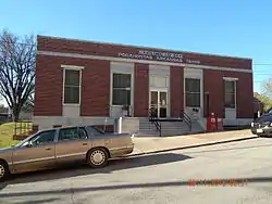 The Old Pocahontas Post Office is located at 109 Van Bibber Street in downtown Pocahontas, Arkansas. It is a single-story square brick building with a flat roof highlighted by a concrete cornice. It was built in 1936–37 with funding from the Works Progress Administration, and is a local example of restrained Art Deco architecture. Its main lobby housed a mural funded by the Section of Fine Arts, drawn by H. Louis Freund, entitled Early Days of Pocahontas.[2]