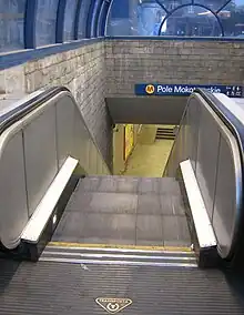 An escalator at the station entrance