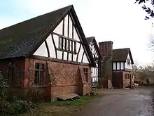 The vicarage was rebuilt in about 1870, incorporating parts of an earlier building, the architect being John Douglas of Chester.[2] It is built on the site of the former lodging of the abbess of Polesworth Abbey. The vicarage is constructed in brown brick with some timber framing and tiled roofs; it is in the form of an E-plan. Internally there is an Elizabethan fireplace and some 17th-century panelling.[1]