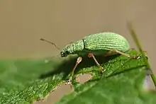 Polydrusus impressifrons, known generally as the pale green weevil or leaf weevil, is a species of broad-nosed weevil in the beetle family Curculionidae.[1][2][3][4] It is found in North America and South Asia.[1]