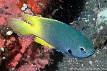 Pomacentrus nigromarginatus, the blackmargined damsel, is a damselfish from the Western Pacific. It occasionally makes its way into the aquarium trade. It grows to a size of 8 cm in length.