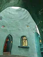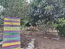During this time, the farm developed a reputation as an activist space,[3][6] with extensive marijuana smoking, squatting, and other exploits. This, combined with the farm's unofficial status, led to strained relations with the college's administration.[7] In 2002, students constructed an earth dome using Nader Khalili's superadobe designs, but the college demolished it at the start of the fall 2002 semester because of safety and permitting concerns.[3] In April 2003, plans began for a new, institutionally-approved Earth Dome,[3] which was completed in 2005. In May 2006, the farm and the college reached an agreement on rules for the farm, and it has since become institutionalized[4][8] and expanded to include the East Farm.[3][9][10]