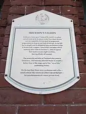 Plaque on the historic Erickson Saloon Building, in which the Pomona Hotel existed