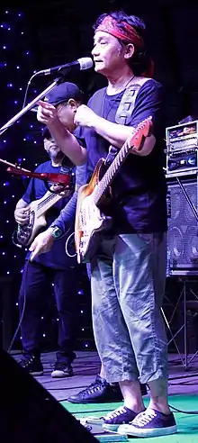 Pongsit "Pu" Kamphee with band performing at Green Mango Club, Ko Samui, 8 July 2022