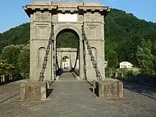 The Ponte delle Catene or Bridge of Chains is a 19th-century suspension bridge in Bagni di Lucca, Tuscany. The Bridge spans the river Lima, a branch of the Serchio, and links Fornoli and Chifenti.