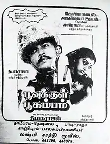 Poovukkul Boogambam (transl.An earthquake within the flower) is a 1988 Indian Tamil-language action war film written, produced and directed by Thiagarajan, making his directorial debut. The film stars himself and Parvathy alongside B. Saroja Devi and Charan Raj in supporting roles. The soundtrack was composed by S. P. Venkatesh, credited as Sangeetharajan. The film was released on 13 April 1988.
