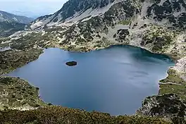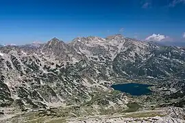 The Popovo Lake (Bulgarian: Попово езеро) is a glacial lake situated in the northern section of the Pirin mountain range, south-western Bulgaria. It is one of the eleven Popovi Lakes. The lake and its surroundings are among the most popular places for summer tourism in Pirin National Park.[1] It is situated at the bottom of the Popovski cirque and is surrounded by the peaks Sivria (2,591 m), Dzhano (2,668 m), Kralev Dvor (2,680 m), Momin Dvor (2,723 m) and Dzhengal (2,730 m).[1]