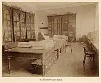 The trustee of the Western Siberia educational district and founder of Tomsk State University, Vasily Markovich Florinsky (Васи́лий Ма́ркович Флори́нский, 1834–1899) invited Krylov to create for Tomsk State University a botanical garden (the first beyond the Urals), as well as a herbarium. In July 1885, Krylov came to Tomsk and brought with him 700 pots of orangery plants for the botanical garden.[1] He immediately began organizing the herbarium in the form of a botanical museum. Construction of the main orangery soon began and 14 greenhouses were prepared. A herb garden with 200 species, an arboretum, a medicinal plant garden and an orchard were created. He created a park in front of the main university building, the so-called university grove (университетская роща).