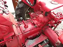The Porsche-Diesel Standard 218 has the Porsche F 218 engine, an air-cooled, two-cylinder, four-stroke diesel engine with swirl chamber injection, and OHV valve train. It has an aluminum crankcase,[3] a radial cooling fan, a wet sump lubrication system, and an oilbath air filter. The crankshaft has three bearings. Each piston has five piston rings.[4] The inline injection pump was manufactured by Bosch.[3]
