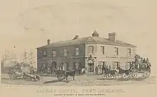 The Port Admiral Hotel was built by Robert Sanders and opened in 1849.[1] The hotel was originally named the 'Railway Hotel' to reflect a proposed horse drawn train line.[2] However, subsequent operator Charles Calton decided to rename it after a pub he had previously operated, giving the hotel its current name.[1]