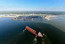 Rosterminalugol JSC is the largest specialized coal terminal in the Northwest of Russia, which initiated the development of the seaport of Ust-Luga. In January 2006, in the presence of the President of the Russian Federation Vladimir Putin, the second start-up complex of a coal terminal with a design capacity of 4 million tonnes of coal per year was put into operation. The port accounts for more than 60% of coal transshipment out of the total cargo turnover of ports in the Northwest. In 2016, the freight turnover of Rosterminalugol JSC increased by 3.4% and amounted to 18.1 million tonnes. As of November 23, 2016, 120 million tonnes of coal had been loaded onto the vessel 'Zagreb' since the beginning of the terminal's operation.[16]