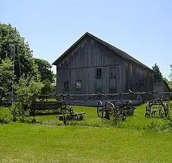 Port Oneida Rural Historic District contains approximately 3,400 acres (1,400 ha) along Lake Michigan, within Sleeping Bear Dunes National Lakeshore. The historic district has roughly 150 buildings, most of which are gathered in separate farmsteads throughout the district. Also included are the remnant of agricultural land-use: fields, orchards, fences, and woodlots.[2]