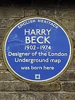 Beck's contribution to the visual style of London Underground is recognised with a plaque at what was his local Underground station, Finchley Central; with a blue plaque at his birth place in Leyton and the Beck Gallery at the London Transport Museum. (Full article...)