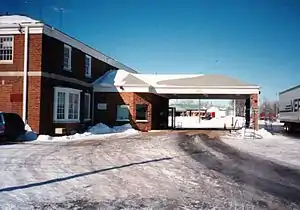 Canada replaced its wood bungalow-style border station in 1955 with a two-story brick and glass structure, then again in 1987 with a single-story sprawling brick structure with an attached three-lane canopy.