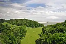 Porthkerry Country Park is a large, public country park between the hamlet of Porthkerry and Barry town, in a valley accessible by car from the north-eastern end at the Garden Suburb area of Barry and via a road section locally known as Fishponds Hill. The western end used to be accessible to light vehicles from Rectory Hill, north-west of Porthkerry viaduct, via an unmetalled lane from the Rectory House at valley bottom (later Egerton Grey Country Guest house, opened in 1988 but closed in 2010) but later metalled as a cycle/pedestrian way to join the metalled road near Porthkerry railway viaduct and public car park. At the south-west end, a steep cliff pathway from the former Bulwarks site, east of Porthkerry Leisure Park area, leads down to Porthkerry beach skirting the Bristol Channel. Other pathways exist, one from Porthkerry Church area adjacent to Porthkerry railway viaduct and the other at the north side of the beach via the famous "Golden Stairs" from the clifftop pathway from the Garden Suburb. Fields, extensive woodland, nature trails and a pebble-stone beach are included. A small golf course has recently been converted to a ponded area with boardwalk alternative access from the car park/café area near the viaduct (April 2020), and is visited by around 250,000 people a year.[8]