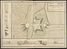 A fort at the site of the crossing of the creek turns up in plans from 1660 and 1666.[3] The fort was rebuilt in 1688 under the direction of the Chief Royal Engineer Sir Martin Beckman.[3]