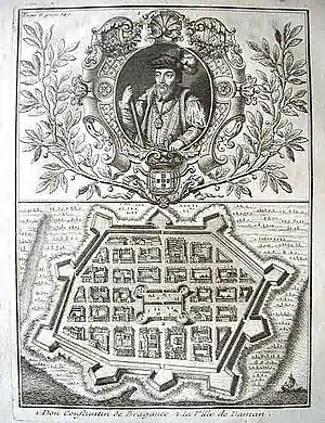 ![]() Copperplate engraving depicting Dom Constantino de Bragança and Daman. | |||||||