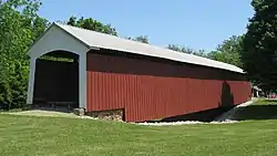 Possum Bottom Covered Bridge, also known as the Jackson's Ford Bridge and Hillsdale Bridge, is a historic Burr Arch Truss covered bridge located in Helt Township, Vermillion County, Indiana. It was built in 1876, and is a single span covered timber bridge. It measures 131 feet long and 14 feet wide. It was moved to its present location at the Ernie Pyle Rest Park in 1972.[2]: 5–6