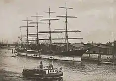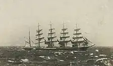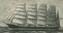 Potosi was a five-masted steel barque built in 1895 by Joh. C. Tecklenborg ship yard in Geestemünde, Germany, for the sailing ship company F. Laeisz as a trading vessel.[1] Its primary purpose was as a "nitrate clipper" collecting guano in South America for use in chemical companies in Germany (mainly for making explosives and fertiliser).[2] As its shipping route was between Germany and Chile, it was designed to be capable of withstanding the rough weather encountered around Cape Horn.[3]