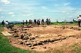 Furthermore, Iron Age occupation of the site has also been established, with a number of round house ditches having been excavated and a large number of others identified by geophysical survey. Dr Kevin Cootes, site director, believes that the assemblage of animal bone and VCP strongly suggests that the site was being used for meat production, preservation (by salting) and trade.[12]