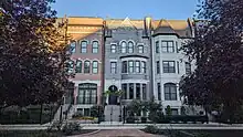 Today, Prairie Avenue has buildings indexed in the Chicago Historic Resources Survey in the Near South Side, Douglas, Grand Boulevard, Washington Park and Chatham community areas.[25] Among the properties listed is a simple two-flat used by Al Capone in the 1920s at 7244 South Prairie in Greater Grand Crossing.[26] Other current prominent addresses are the Kimball House at 1801 South Prairie (Near South Side),[23] 2801, 3564, 3566, and 3600 South Prairie (Douglas),[27] and 4919 South Prairie (Grand Boulevard).[28]