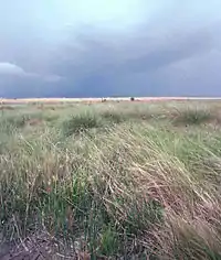 Prairie soil is also useful for carbon sequestration.[15] Carbon dioxide is a heat trapping gas, and 40% of it is produced by humans and remains in the atmosphere thus worsening the effects of global warming.[16] Prairie grass collects this carbon from the atmosphere through photosynthesis and stores it in its soil.[17][18] When left undisturbed, the prairie soil acts as a Carbon sink, meaning it absorbs more carbon from the atmosphere than it releases.[16][17]