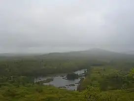 New Ipswich Mountain is located directly to the north along the Wapack ridgeline; to the southeast rise Binney Hill 1,441 feet (439 m), Emerson Hill 1,551 feet (473 m), Nutting Hill 1,620 feet (490 m), and Mount Watatic, the southern terminus of the Wapack Range.