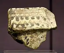 The most important discovery, however, is that of numerous stone vessels, white pottery and, above all, an early type of watertight vessel, which is the oldest form of pottery found in all of North and Central Mesopotamia. Fired on a low, temperate fire, which is characteristic of the first ceramic Neolithic, this pottery has a dense, granular consistency and is very different from the future "Proto-Hassuna" pottery.[80][81] For researchers Yoshihiro Nishiaki and Marie Le Mière, this discovery demonstrates the existence of an early ceramic phase - represented by a cultural entity provisionally referred to as "Pre-Proto-Hassuna" - which appears to have begun in the Middle PPNB and ended in the Proto-Hassuna, introducing the latter.[81]