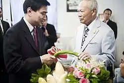 During the Thai political crisis of the mid-2000s, he was accused by deposed prime minister Thaksin Shinawatra and his supporters of masterminding the 2006 coup,[4] as well as in the appointment of the post-coup legislature and interim government of Surayud Chulanont.[5] The military junta that ousted Thaksin denied that Prem had any important political role.[6] Prem, as the President of the Privy Council, promoted King Bhumibol's ideologies and royal projects, though he sometimes represented himself as being the voice of the king. He urged Thai society to follow the king's advice and himself founded several welfare projects related to education, drug suppression, poverty, and national unity. A southerner, Prem had also dealt personally with trying to resolve the South Thailand insurgency.[7]