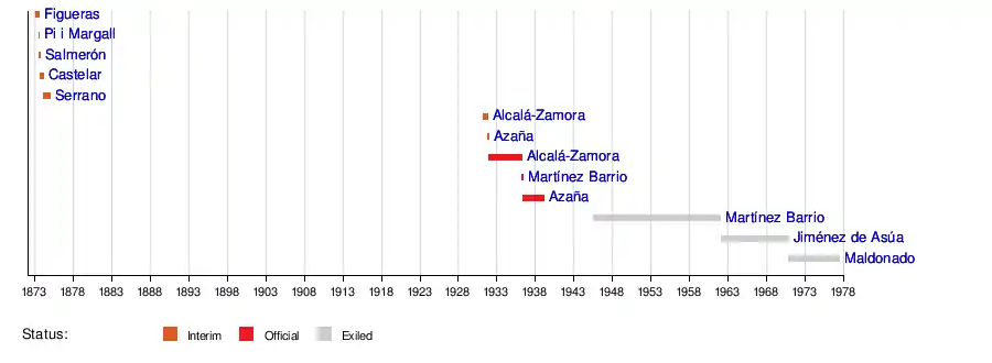 ![]() | Diego Martínez Barrio | 17 August 1945 | 1 January 1962 | Republican Union (Popular Front) |