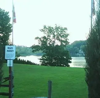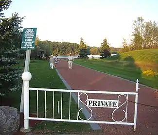 At least since 1998, the north shore community of Preston Lake (Preston Lake Country Club) has been divided and unable to agree on a funding formula and strategy for the maintenance of their commonly held, private road network. The club has become dependent on the larger town to facilitate discussions on the maintenance of the club's own internal road network, to provide an annual grant for road maintenance, for liability insurance to cover Preston North Shores Roads Committee (including sub-committees for the maintenance of a private beach), and since 2004, to collect maintenance fees for the private roads through realty taxes.[11] Grants from other levels of government have also been sought.[12] Despite the larger town's assistance in the maintenance of the club's road network and lake access route, the roads remain private property, and citizens outside the Preston Lake Country Club have no legal access to the lake from the beach-front road.