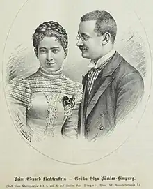 Eduard married Countess Olga of Pückler-Limpurg (11 April 1873 – 14 February 1966) on 31 August 1898 in Višňové.[2]