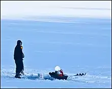 Ice fishing on Glendale Lake at Prince Gallitzin State Park