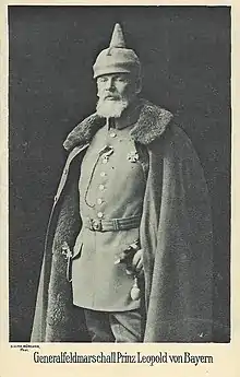 Prince Leopold of Bavaria (Leopold Maximilian Joseph Maria Arnulf; 9 February 1846 – 28 September 1930) was born in Munich, the second son of Prince Regent Luitpold of Bavaria (1821–1912) and his wife Archduchess Augusta of Austria (1825–1864). He was a Field Marshal (Generalfeldmarschall) who commanded German and Austro-Hungarian forces on the Eastern Front in World War I.