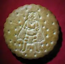“Prince biscuit”, or “prince bisket” first appeared in a cookbook in the early 1600s. In 1602, Sir Hugh Platt's “Delightes of Ladies to adorn their Persons, Tables, Closets, and distillatories with Beauties, banquets, perfumes and waters. A first version of the Prince biscuit was designed and sold in Antwerp in 1894 in honor of the Belgian King Leopold II after he visited the pavilion of cookie manufacturer Edward De Beukelaer at the Exposition Internationale d'Anvers (1894). The original design was a dry biscuit with an imprint of the coat of arms of the Kingdom of Belgium.