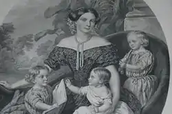 The couple shared many interests, particularly with the theatre, as they were both ardent attendees; during their engagement, they had even acted in amateur court theatricals together.[1] They had four children.[2] Charlotte had a talent for music, and was taught by the likes of Wilhelm Taubert, Theodor Kullak and Julius Stern in her youth. She wrote a number of military marches, songs and piano pieces.[4] Her daughter, Princess Marie Elisabeth, would inherit these interests.
