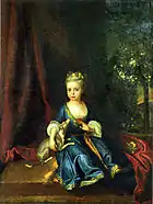 - ↑ Genealogie ascendante jusqu'au quatrieme degre inclusivement de tous les Rois et Princes de maisons souveraines de l'Europe actuellement vivans [Genealogy up to the fourth degree inclusive of all the Kings and Princes of sovereign houses of Europe currently living] (in French). Bourdeaux: Frederic Guillaume Birnstiel. 1768. p. 16.
