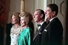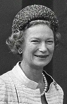 As Grand Duchess, she often accompanied her husband on foreign visits, as well as many events within Luxembourg itself.[3] She and the Grand Duke made numerous state visits such as to the Vatican and Brazil in 1965, the United Kingdom in 1972, USSR and Tunisia in 1975, Senegal in 1977, China in 1979, and the United States in 1984.[6] During her tenure as a consort, she and her husband hosted 39 state visits to Luxembourg.[6]