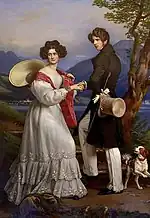 Ludovika married Maximilian Joseph, Duke in Bavaria, whose father Duke Pius August in Bavaria was her cousin, on 9 September 1828 in Tegernsee. Ludovika was always frustrated that, unlike her elder sisters who married kings and Austrian archdukes, she would not be marrying someone with a grand title, but rather a peculiar and childish duke who had a fondness for circuses. However, Ludovika was determined to create dynastic marriages for her daughters. She and her husband had ten children, including Empress Elisabeth of Austria and Queen Maria Sofia of the Two Sicilies.[2]