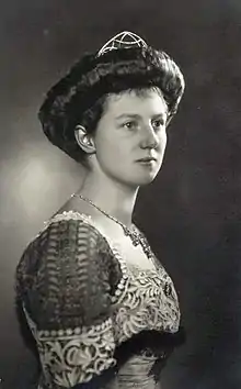 Princess Victoria Adelaide of Schleswig-Holstein-Sonderburg-Glücksburg (German: Viktoria Adelheid Helene Luise Marie Friederike; 31 December 1885 – 3 October 1970) was Duchess of Saxe-Coburg and Gotha as the consort of Duke Charles Edward from their marriage on 11 October 1905 until his abdication on 14 November 1918. Victoria Adelaide is the maternal grandmother of Carl XVI Gustaf of Sweden. She was a niece of German Empress Augusta Victoria.