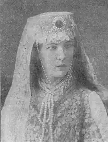 Act II. A group of women congratulates Fatima on her impending nuptials. After they leave, Fatima reveals her sadness to her friend Mar'iam. Hearing the approaching steps of Kazenbek and Fekherdin, the two of them hide behind a curtain while overhearing the conversation. The mullah has had a dream revealing Fatima's love for the Russian Prisoner. The two men exit.