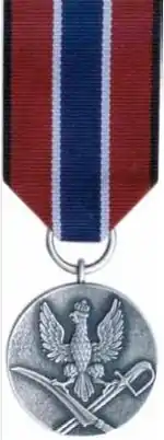 The Pro Patria Medal is awarded by the Head of the Office for War Veterans and Victims of Oppression based upon an application with documentation from veteran and victim of oppression groups. Recommendations may also be made by departments of the Polish Government or Polish diplomatic missions and military attachés.[1] The medal is awarded to mark special merit in strengthening and treasuring the memory of the Polish people's fight for the independence of the Polish Republic during and following World War II.[2]