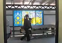 The 2006 artwork here is called Bronx, Four Seasons by Ukrainian artist Marina Tsersarskaya. It consists of stained glass panels on the platform windscreens and station houses depicting images related the four seasons of meteorology.[16]