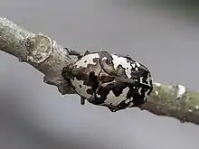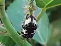 The ground colour of the beetle is bronze with white markings on the elytra. Males have spines apical elytral angles.[1] Like other flower-beetles, adults visit flowers but they are known to sometimes visit beehives and feed on pollen collected.[2]